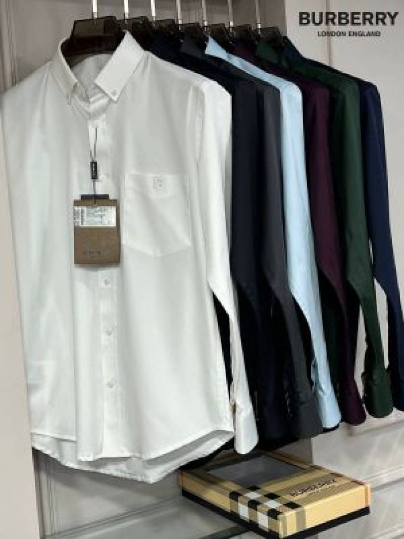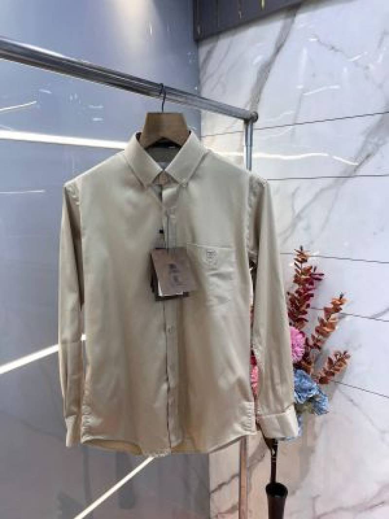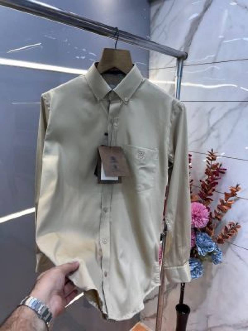 Burberr y Beige Premium Imported Embroidered Logo Shirt with custom Branded Button Tagging And Brand Packing 3253