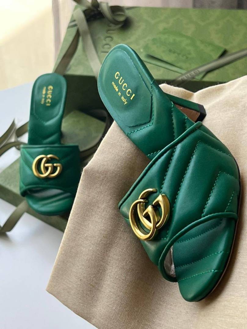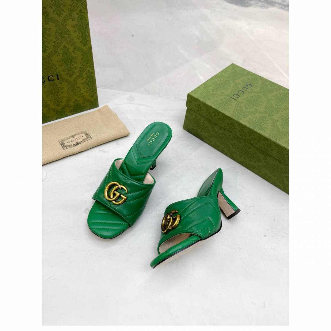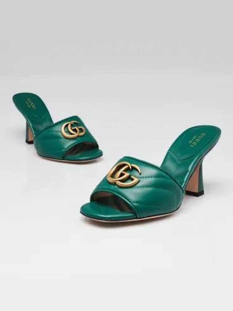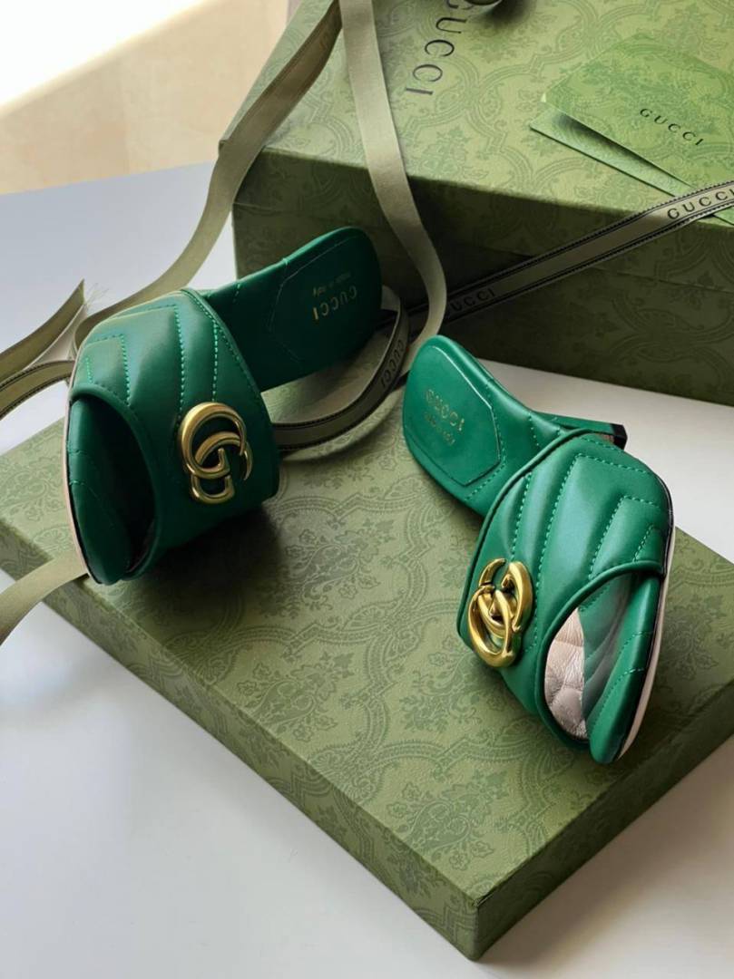 Gucci_GG_Marmont_Green_Mules_Sandal_Heel_For_Women_With_Original_Box_And_Carry_Bag