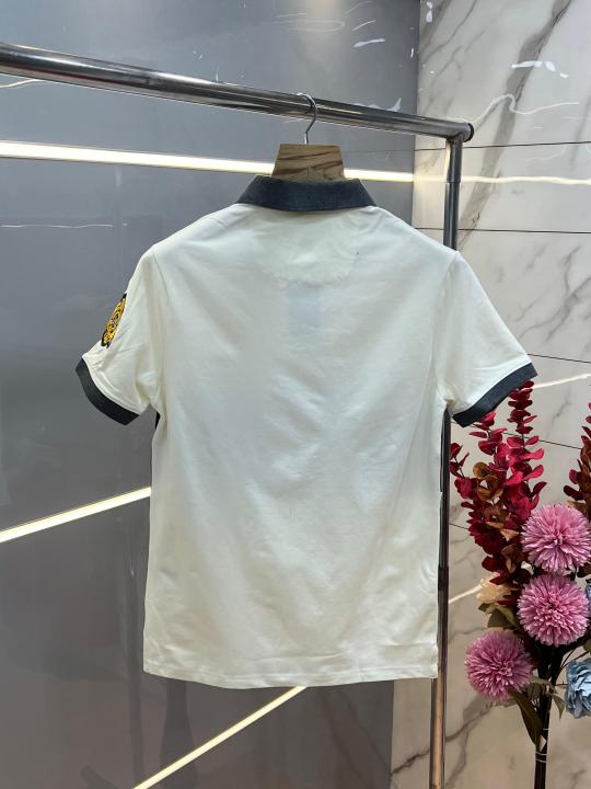 Hugo Bos s White Premium Imported Compact Yarn 240 GSM Interlock Fabric Polo Tshirt with Collar Design and Emboss Logo 3695