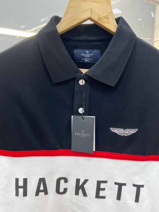 Hacket White Premium Imported Compact Yarn 240 GSM Interlock Fabric Polo Tshirt with Front Design and Embroidered Logo 3700
