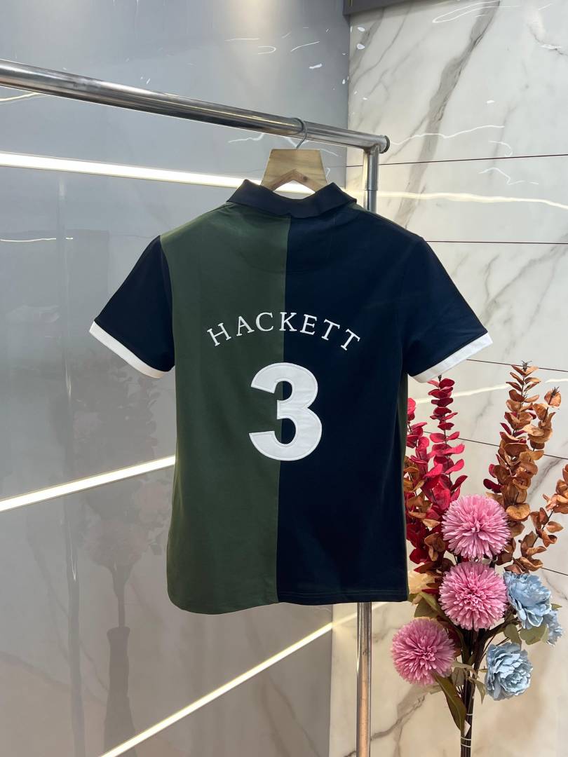 Hacket Black Premium Imported Compact Yarn 240 GSM Interlock Fabric Polo Tshirt with Front Design and Embroidered Logo 3701