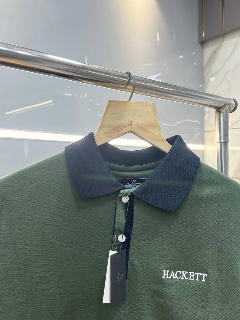 Hacket White Premium Imported Compact Yarn 240 GSM Interlock Fabric Polo Tshirt with Front Design and Embroidered Logo 3700
