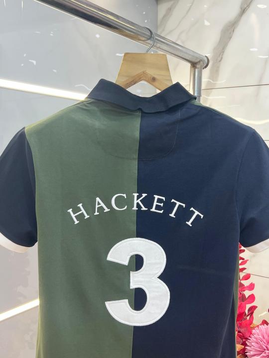 Hacket Navy Premium Imported Compact Yarn 240 GSM Interlock Fabric Polo Tshirt with Back Design and Embroidered Logo 3697