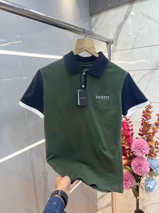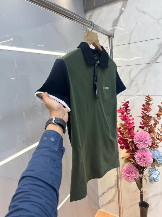 Hugo Bos s English Green Premium Imported Compact Yarn 240 GSM Interlock Fabric Polo Tshirt with Collar Design and Emboss Logo 3696