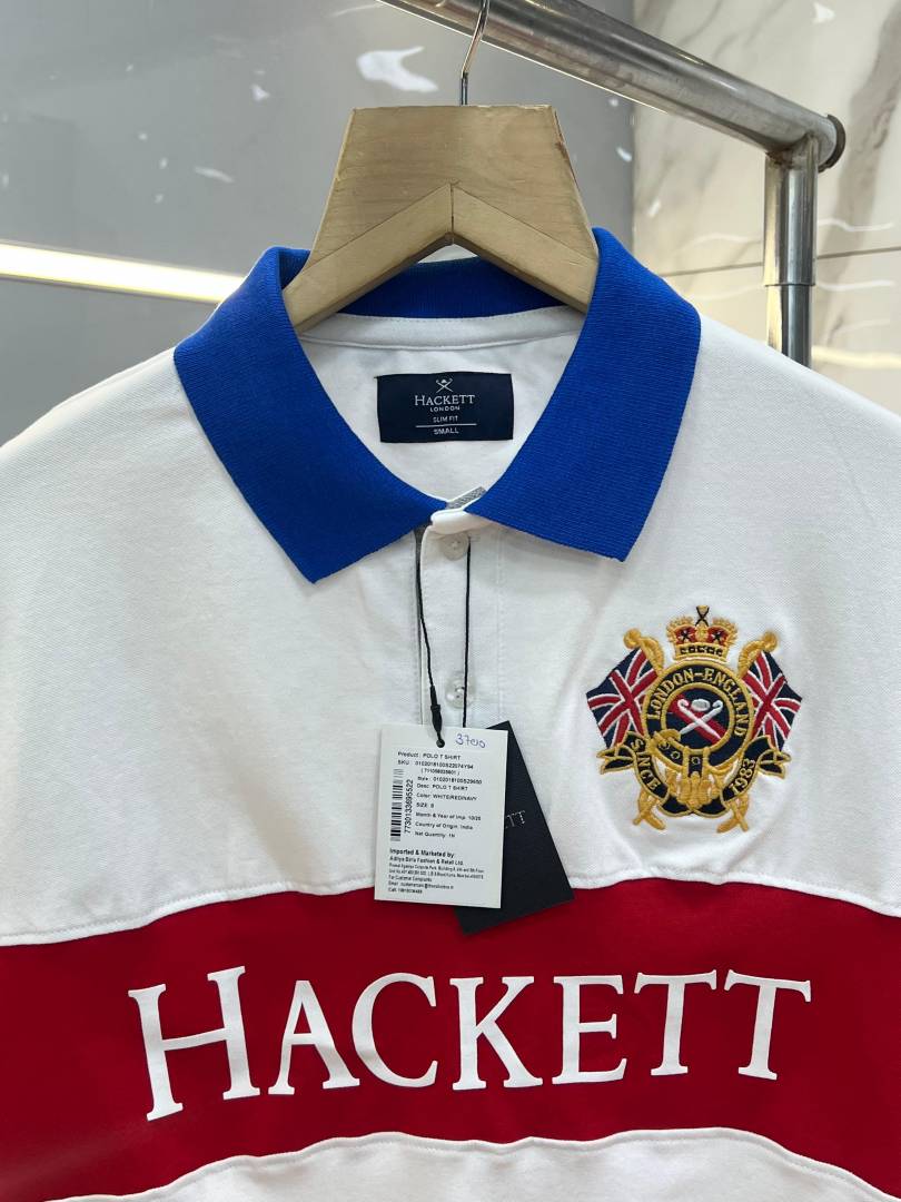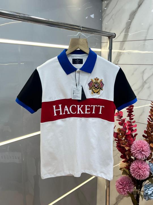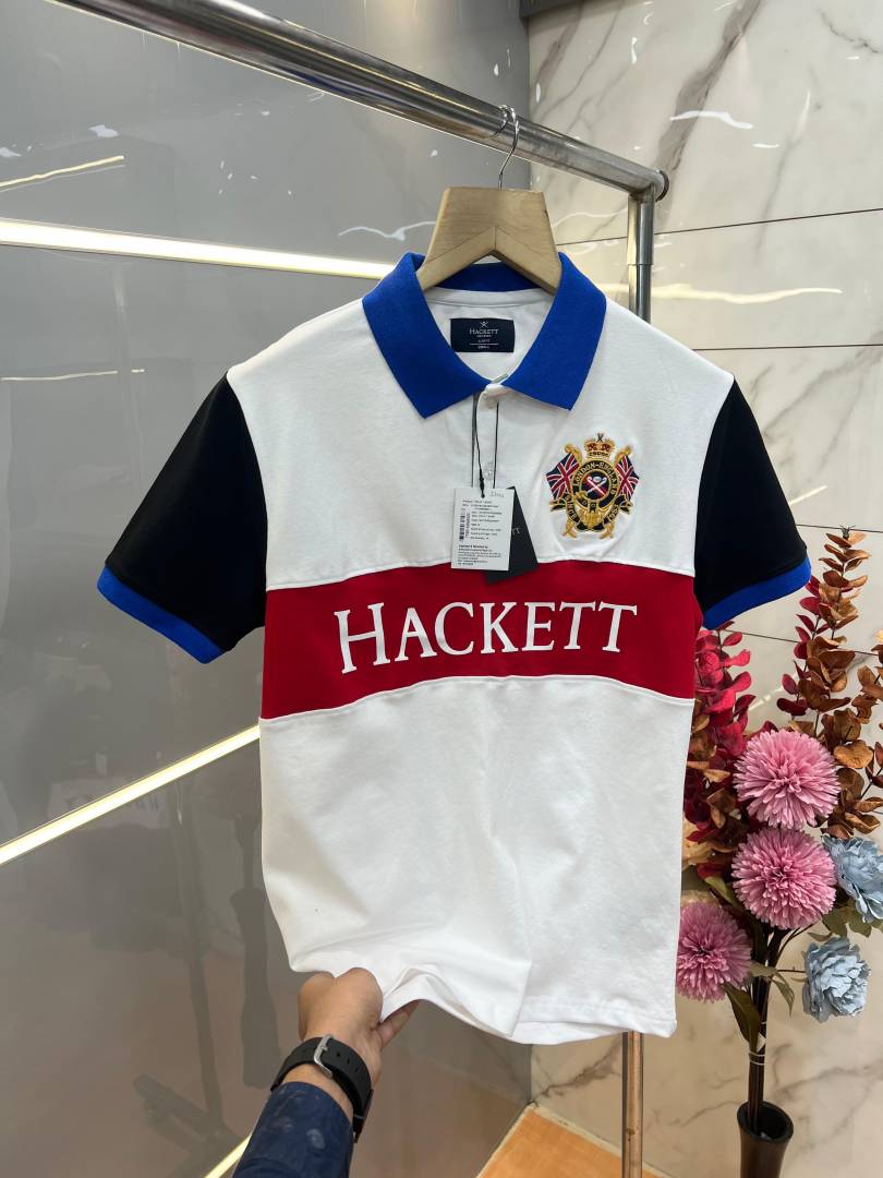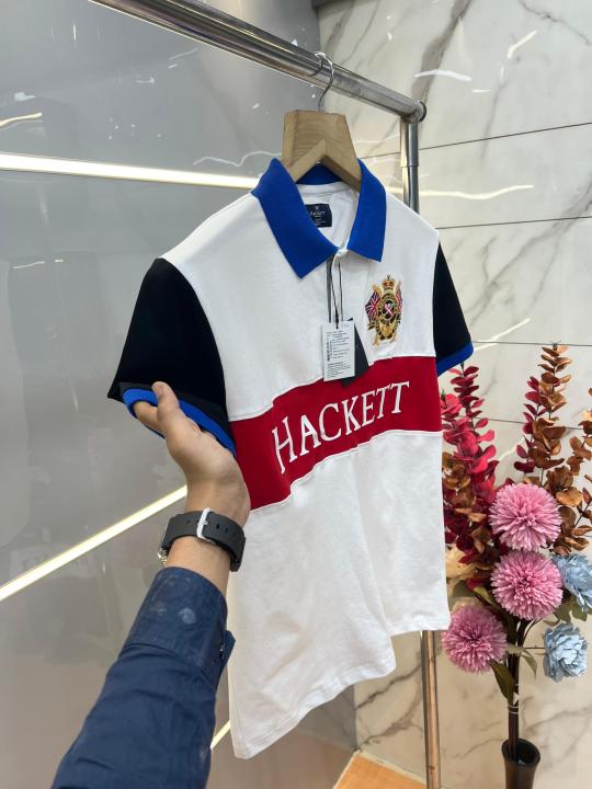 Hacket White Premium Imported Compact Yarn 240 GSM Interlock Fabric Polo Tshirt with Front Design and Embroidered Logo 3700