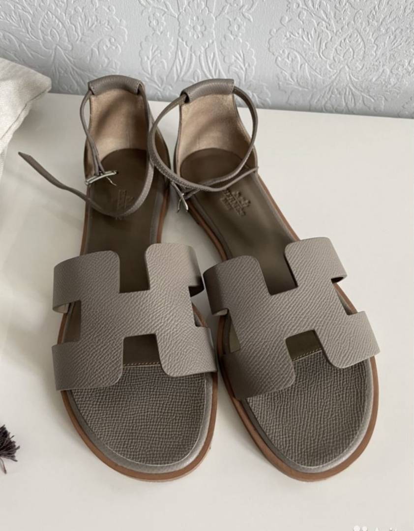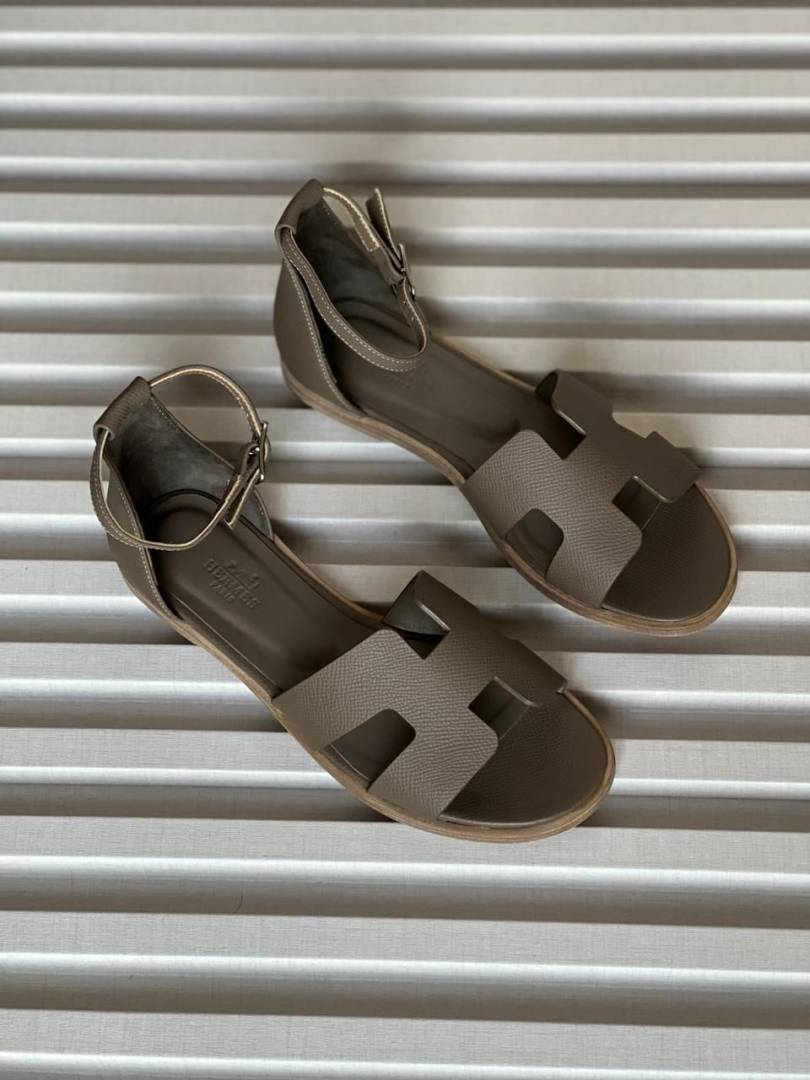 Hermes Santorini Khakhi Flat Sandal With Original Box