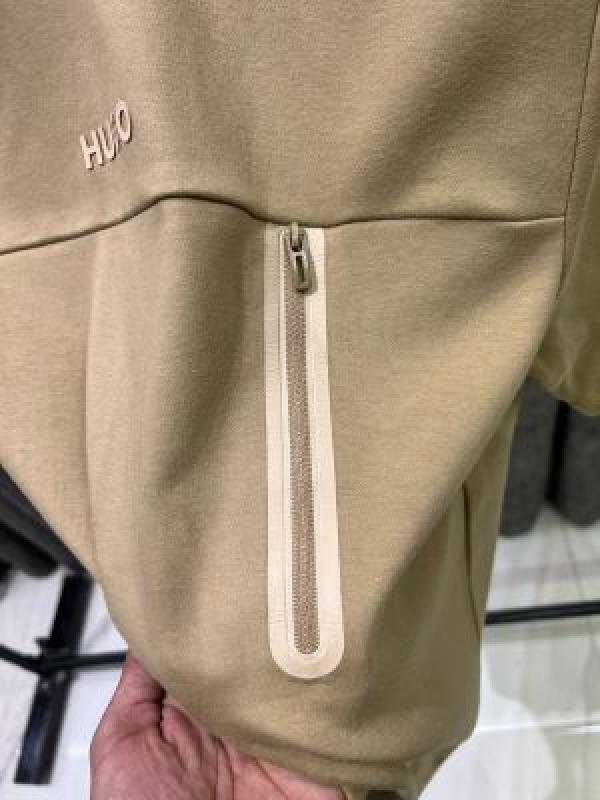 Hugo Bos s Green Premium Imported 240 GSM Interlock Lycra Fabric Polo Tshirt with Emboss Logo and Brand Box Zip Style 3985