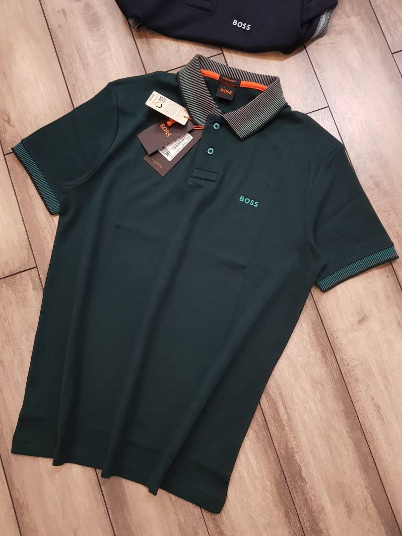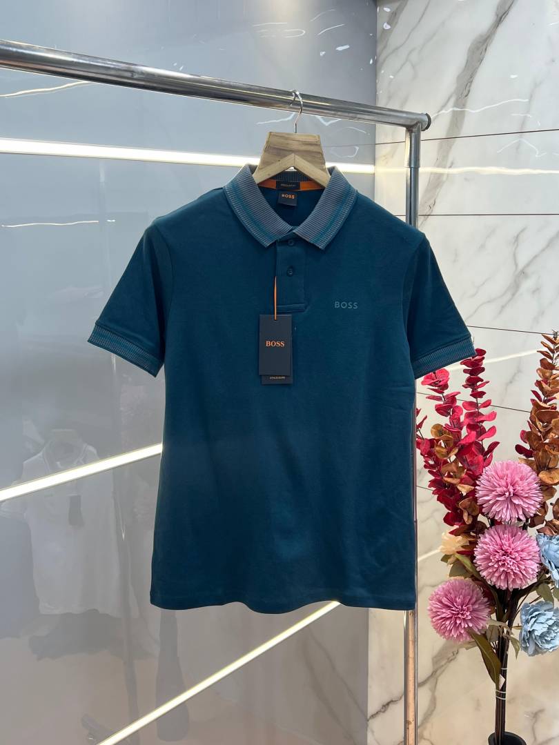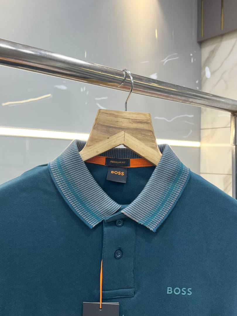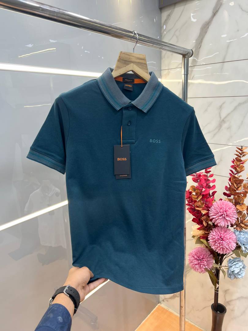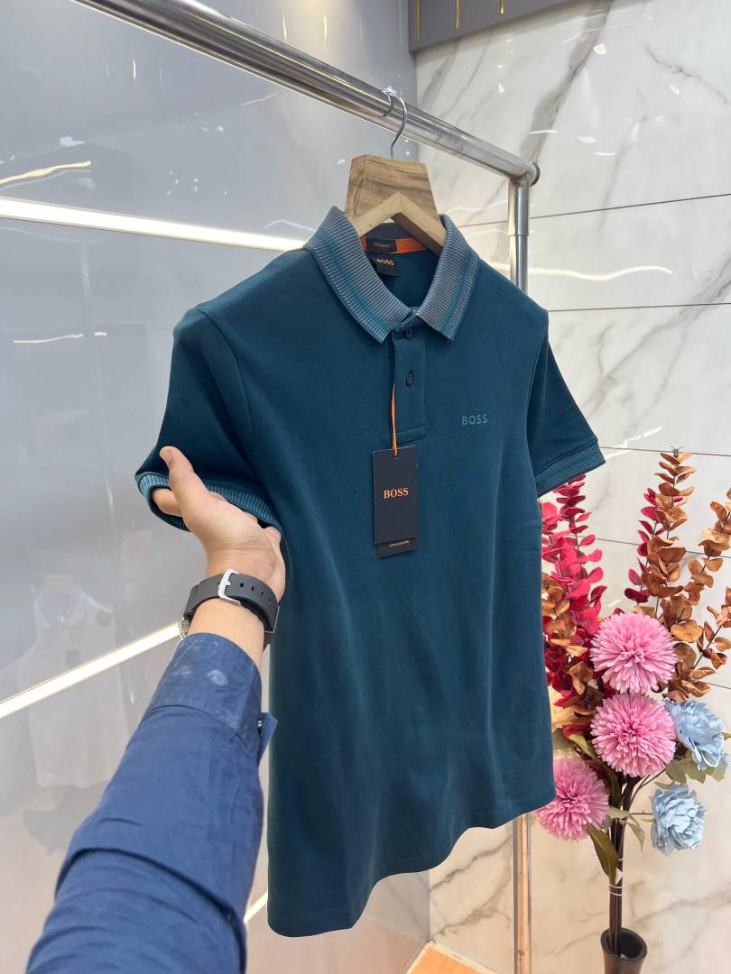 Hugo Bos s English Green Premium Imported Compact Yarn 240 GSM Interlock Fabric Polo Tshirt with Collar Design and Emboss Logo 3696