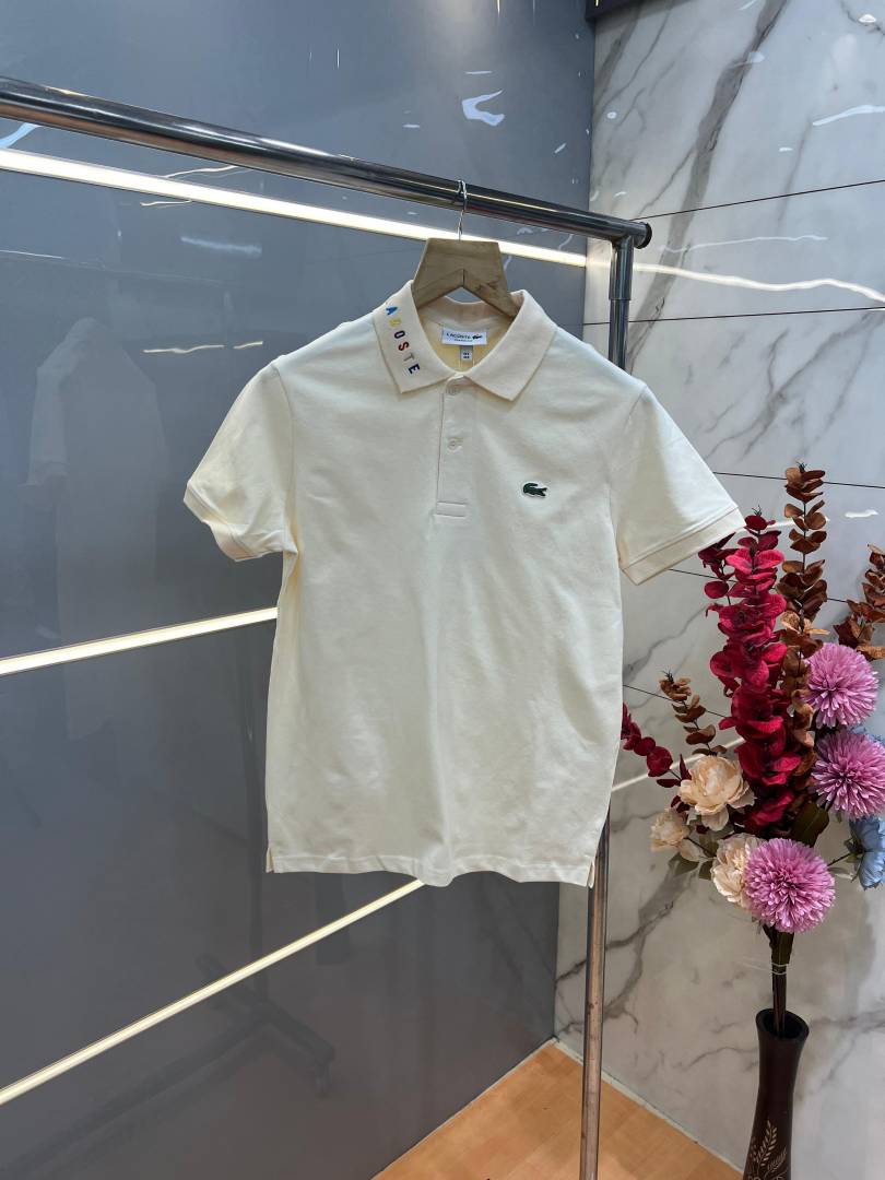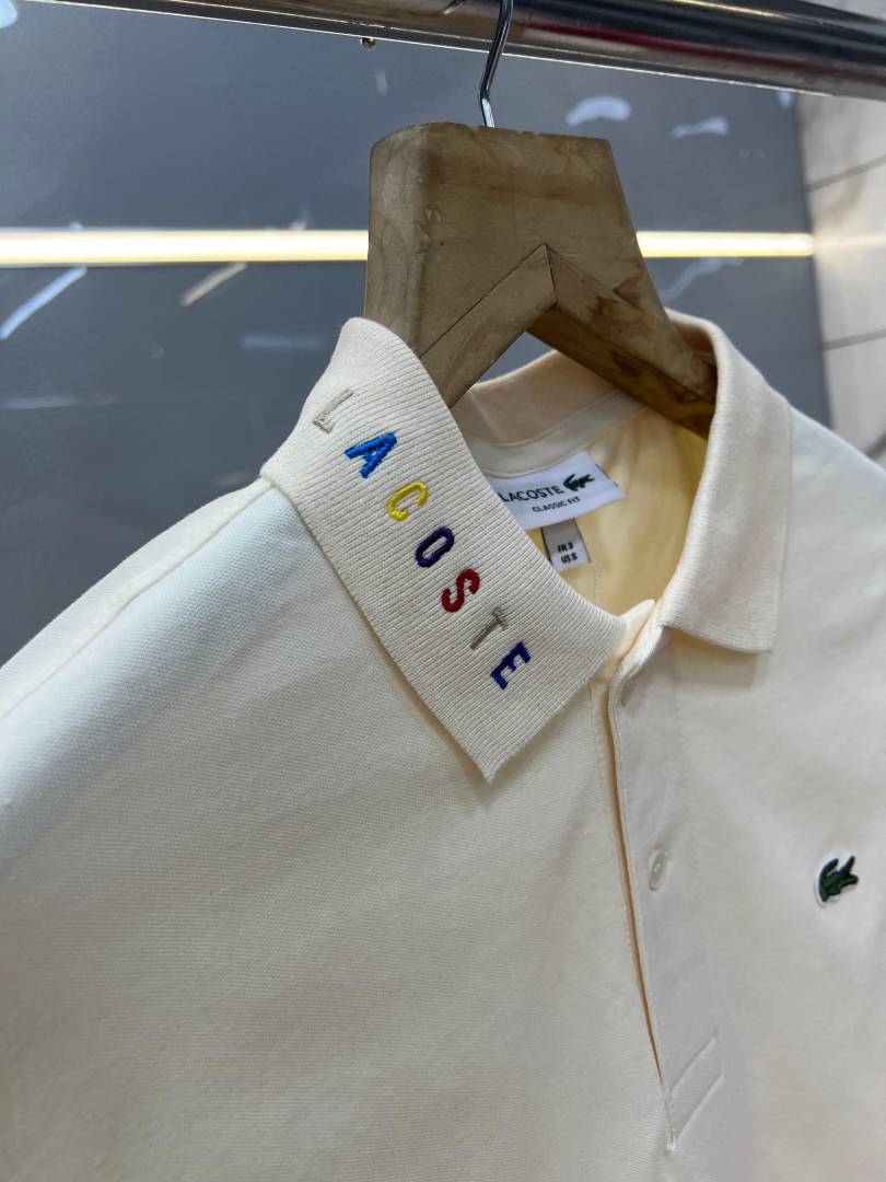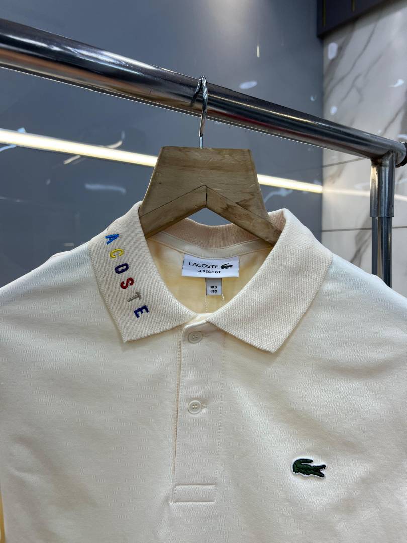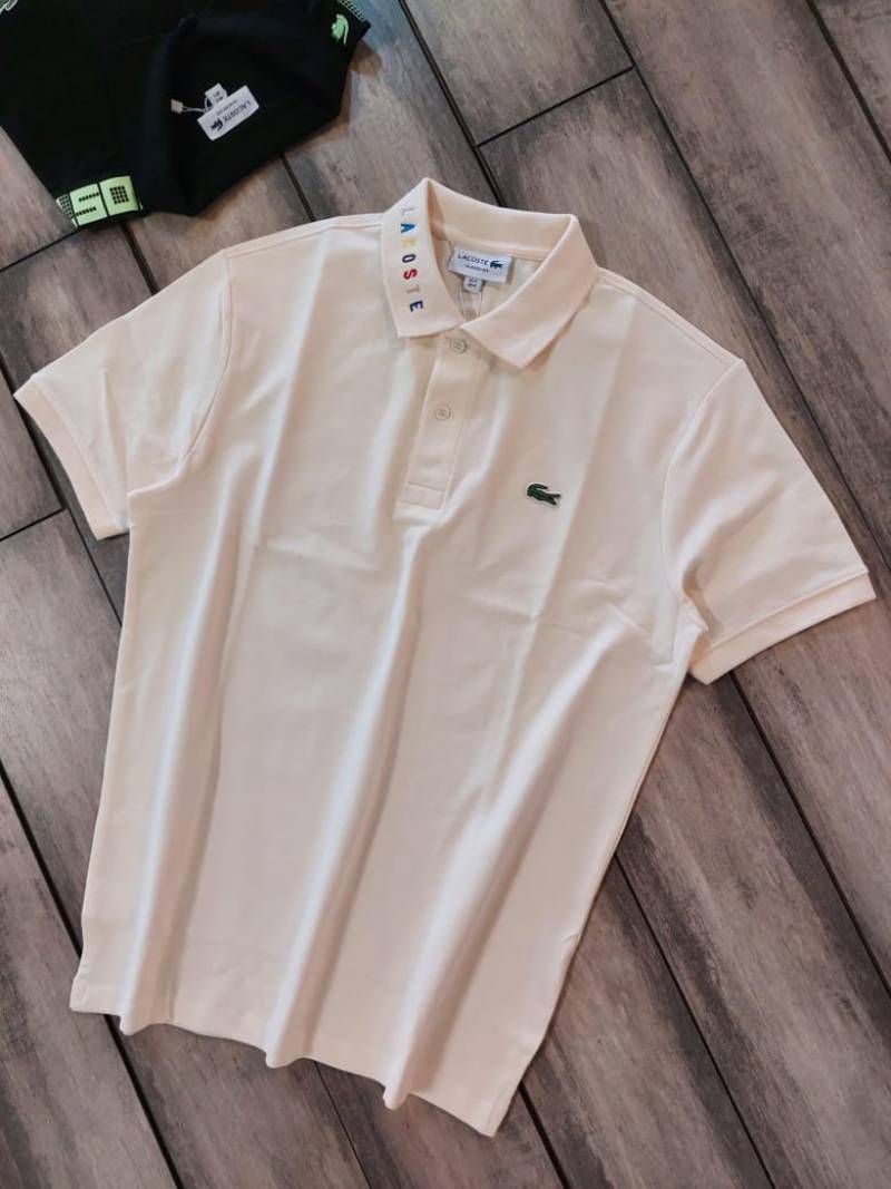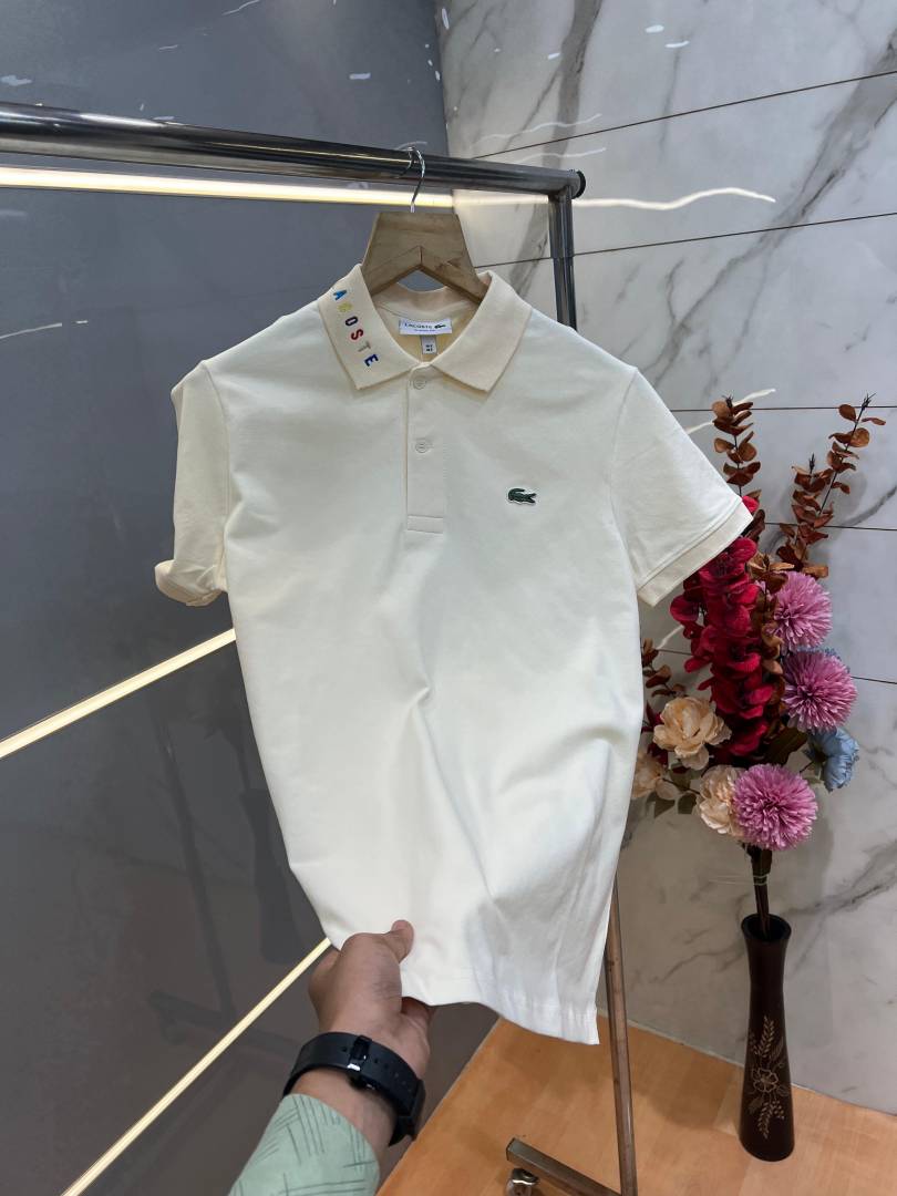 Lacost e Beige Premium Cotton Pique fabric Polo Tshirt with Collar Design and Embroidered Logo 3996
