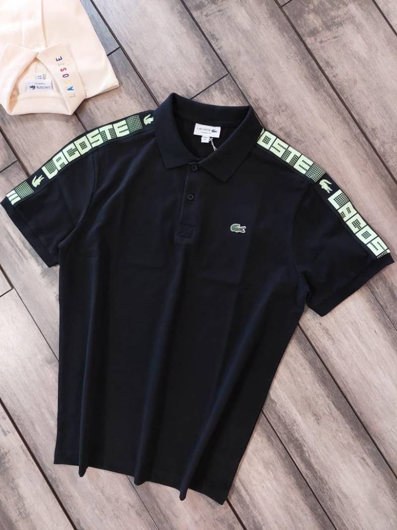 Lacost e Black Premium Cotton Pique fabric Polo Tshirt with Shoulder Design and Embroidered Logo 3991