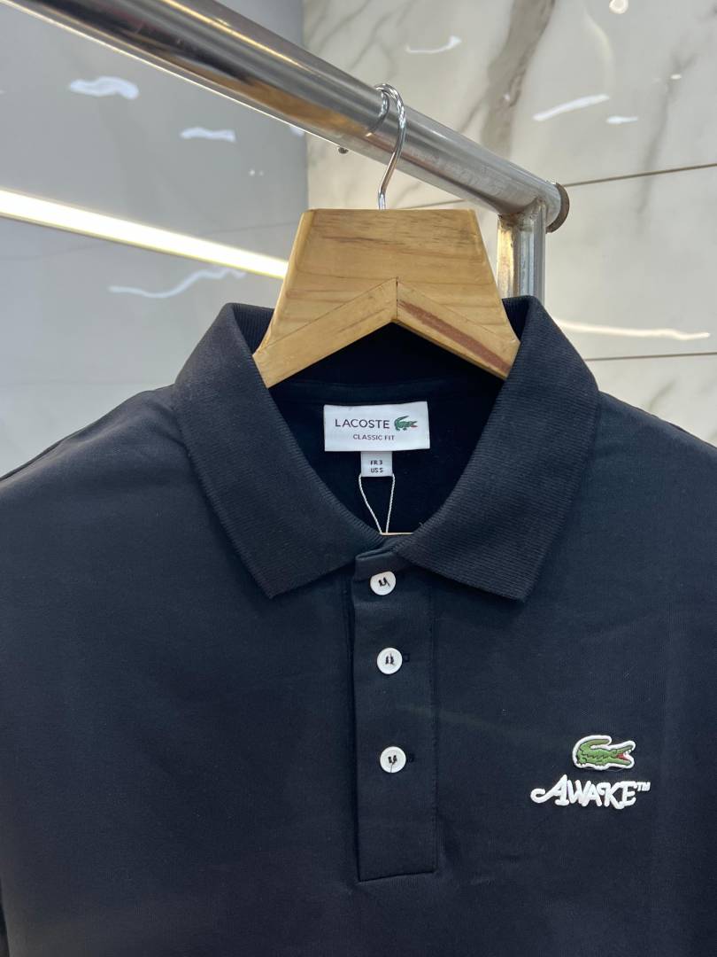 Lacost e Black Premium Cotton Pique fabric Polo Tshirt with Sleeves Design and Embroidered Logo 3989