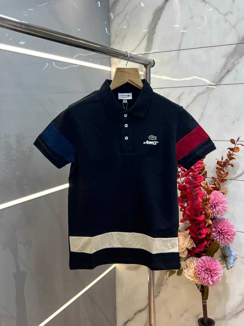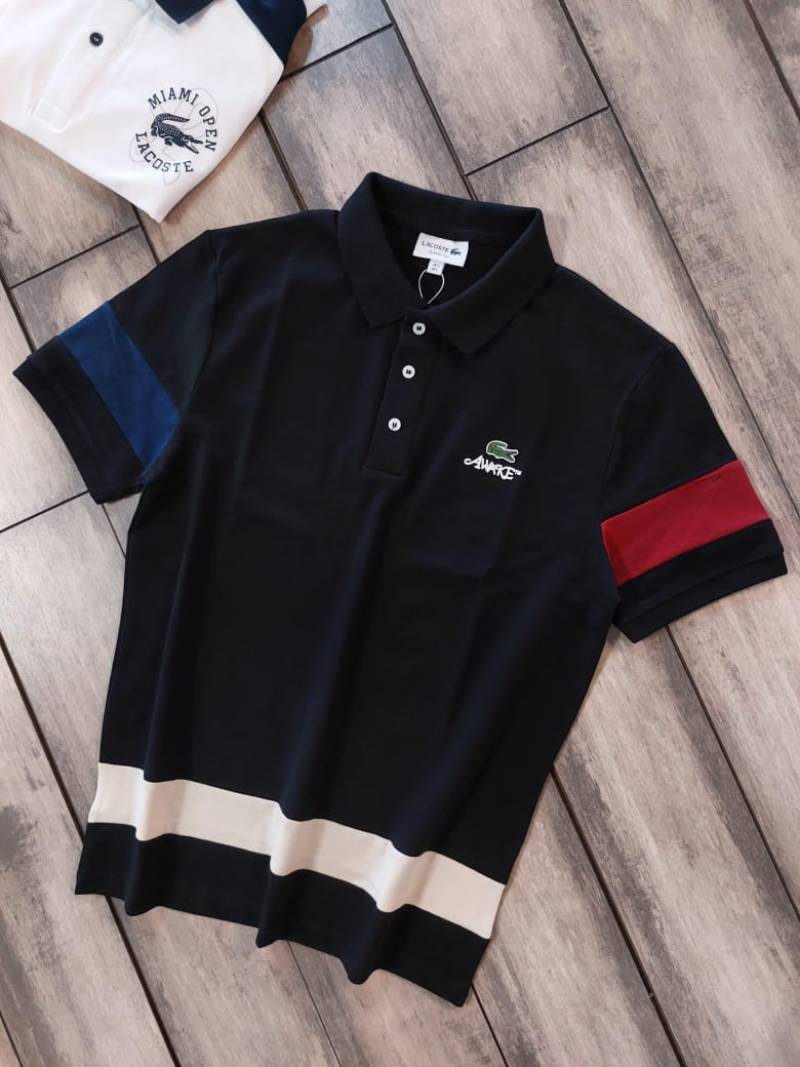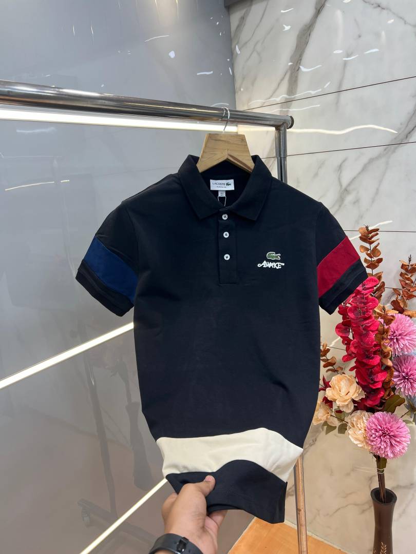 Lacost e Black Premium Cotton Pique fabric Polo Tshirt with Shoulder Design and Embroidered Logo 3991
