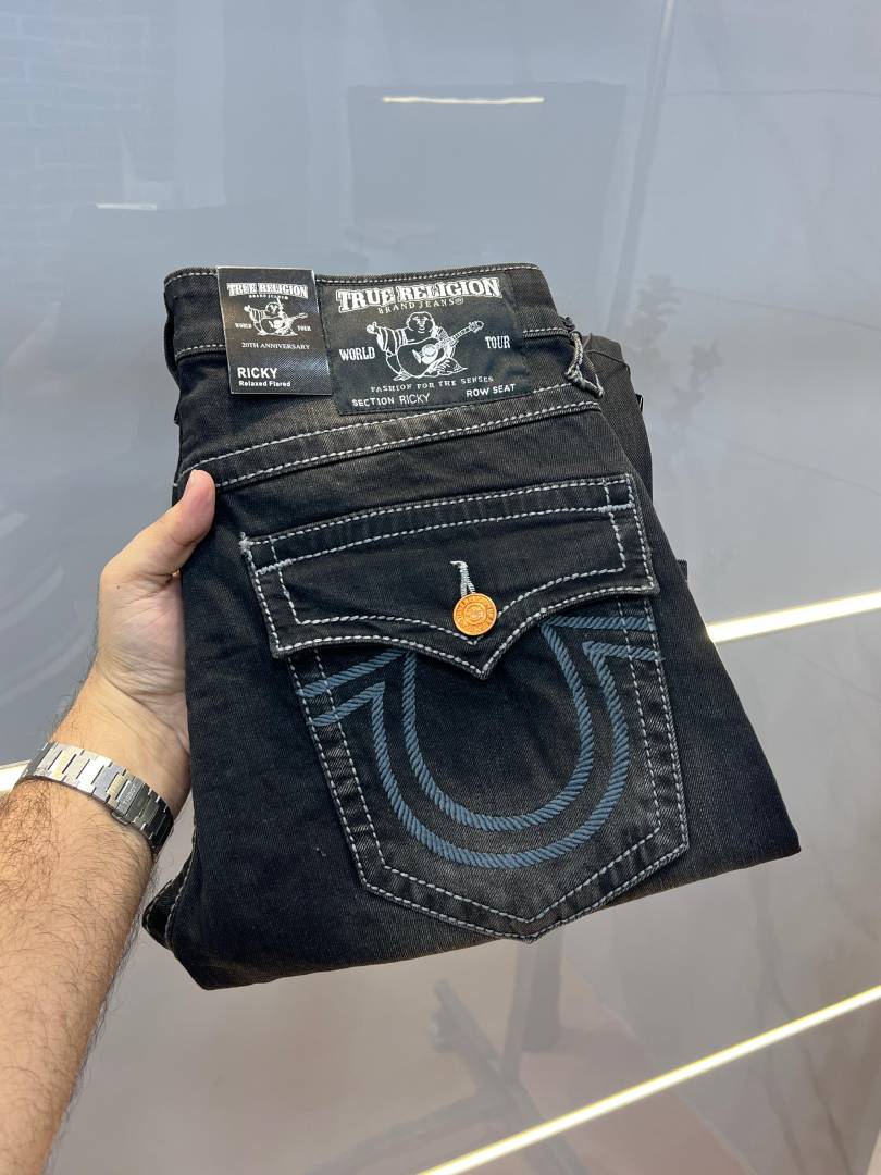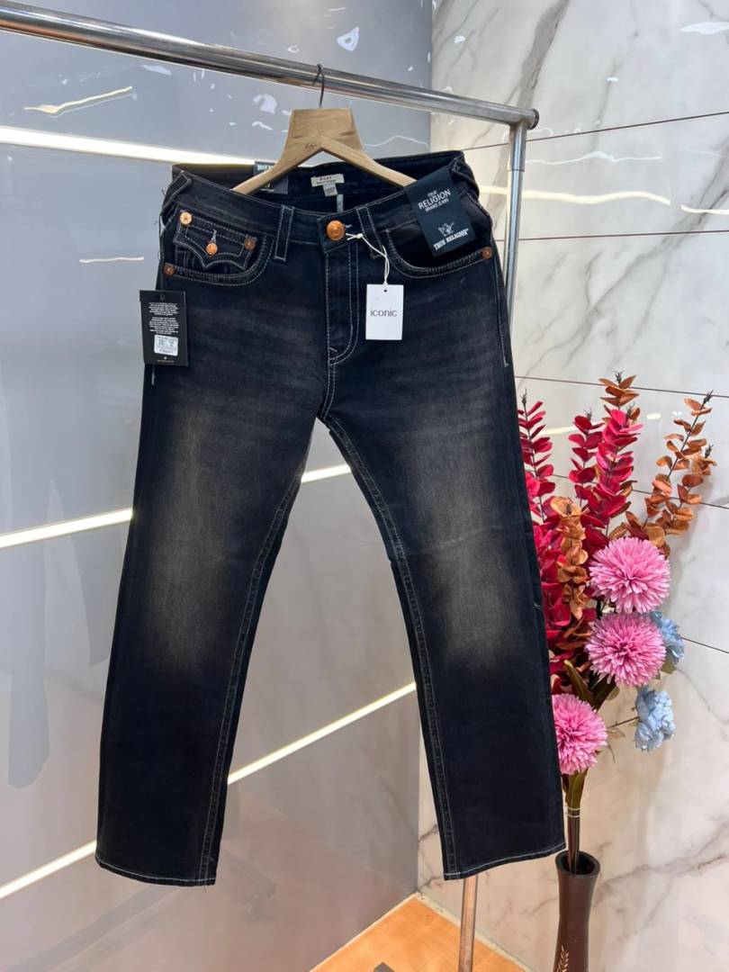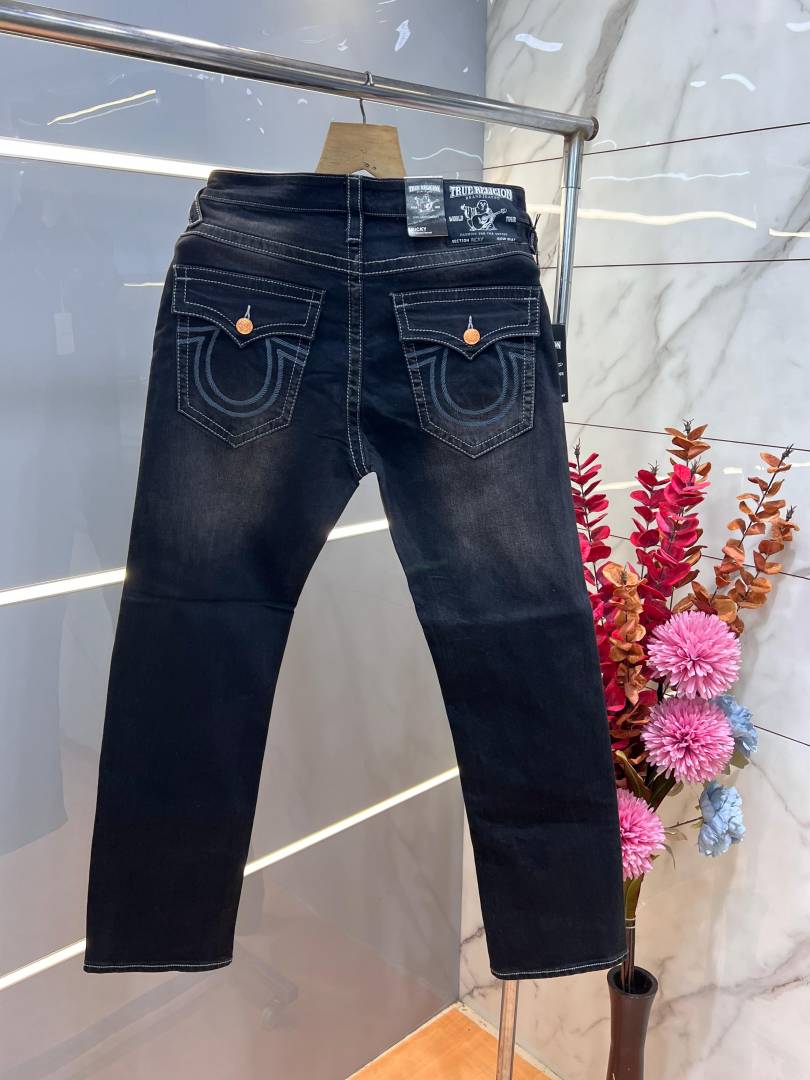 True Religio n Black Shade Premium Imported Stretchable Lycra Fabric Straight fit Denim with Back Flap pocket Design 3394